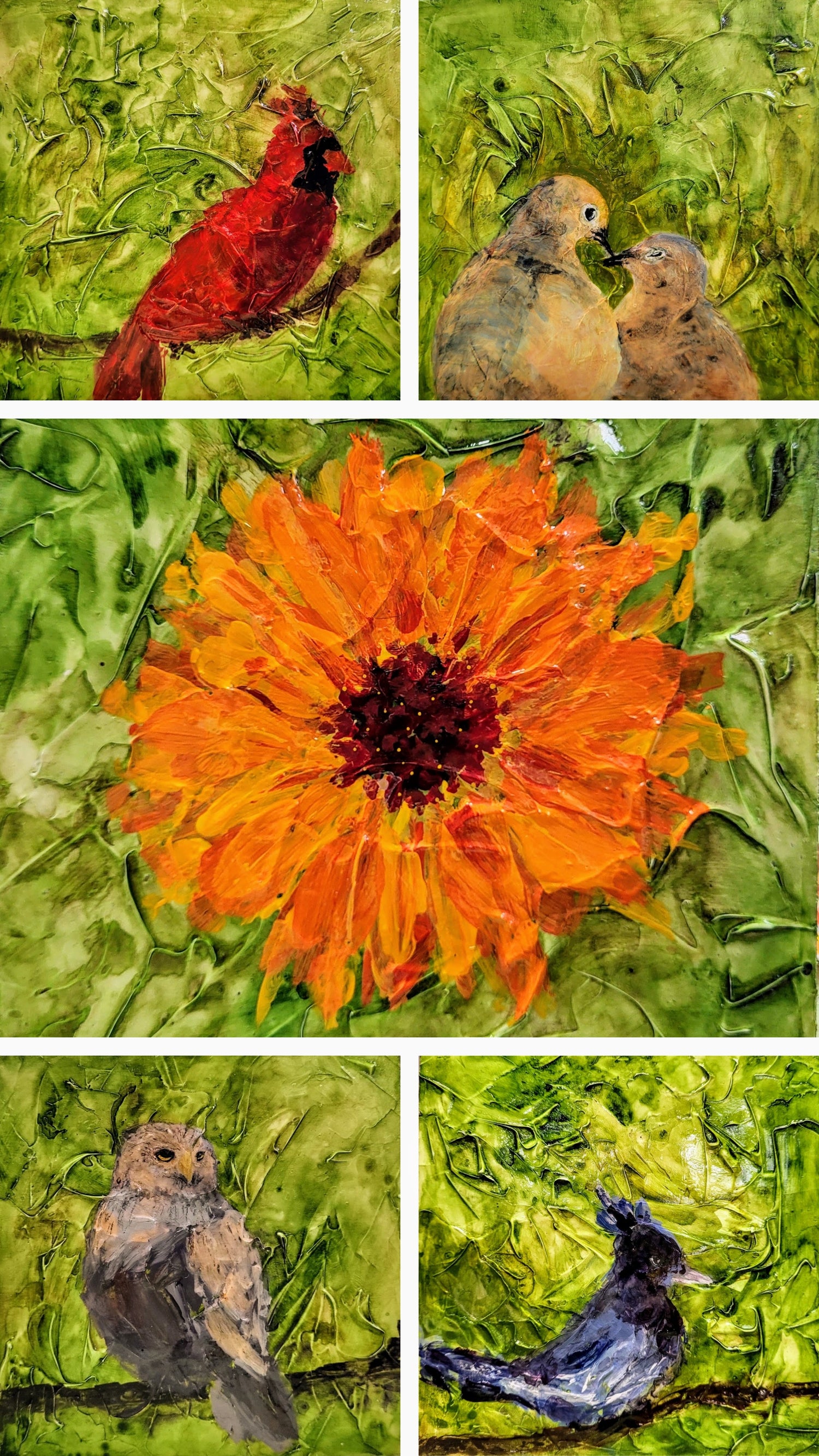 Laura's 6" x 6" paintings on cradled wooden panel can be hung in tiny spaces, placed on table easels or flat on just about any surface. What a lovely gift idea!