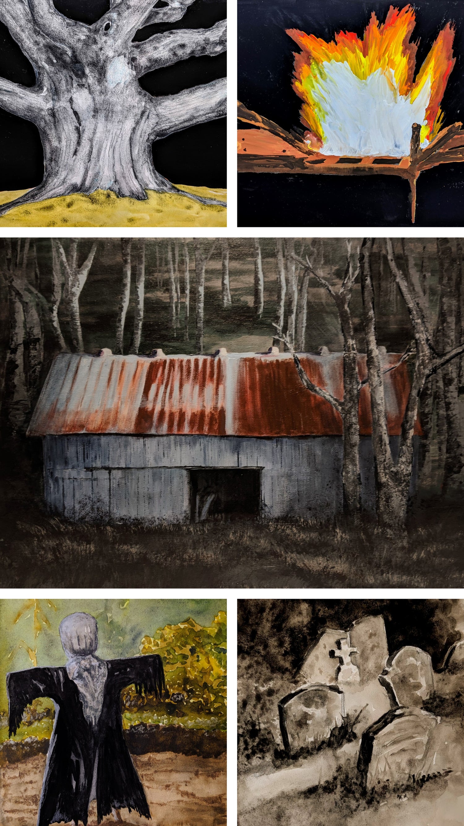 Laura's featured art draws on her experiences from around the world (in carousel above):