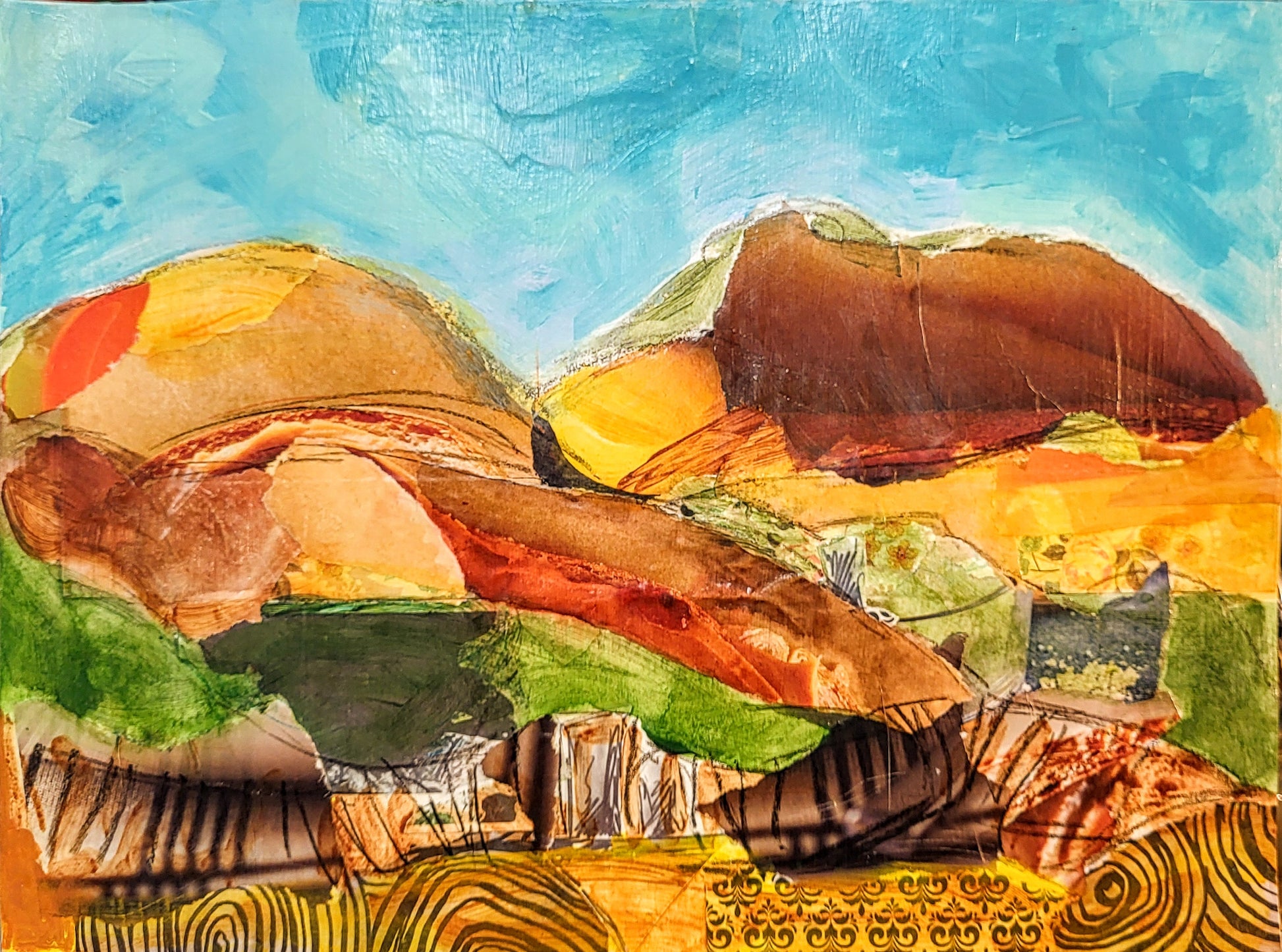 mixed media & collage on paper, 9" x 12"