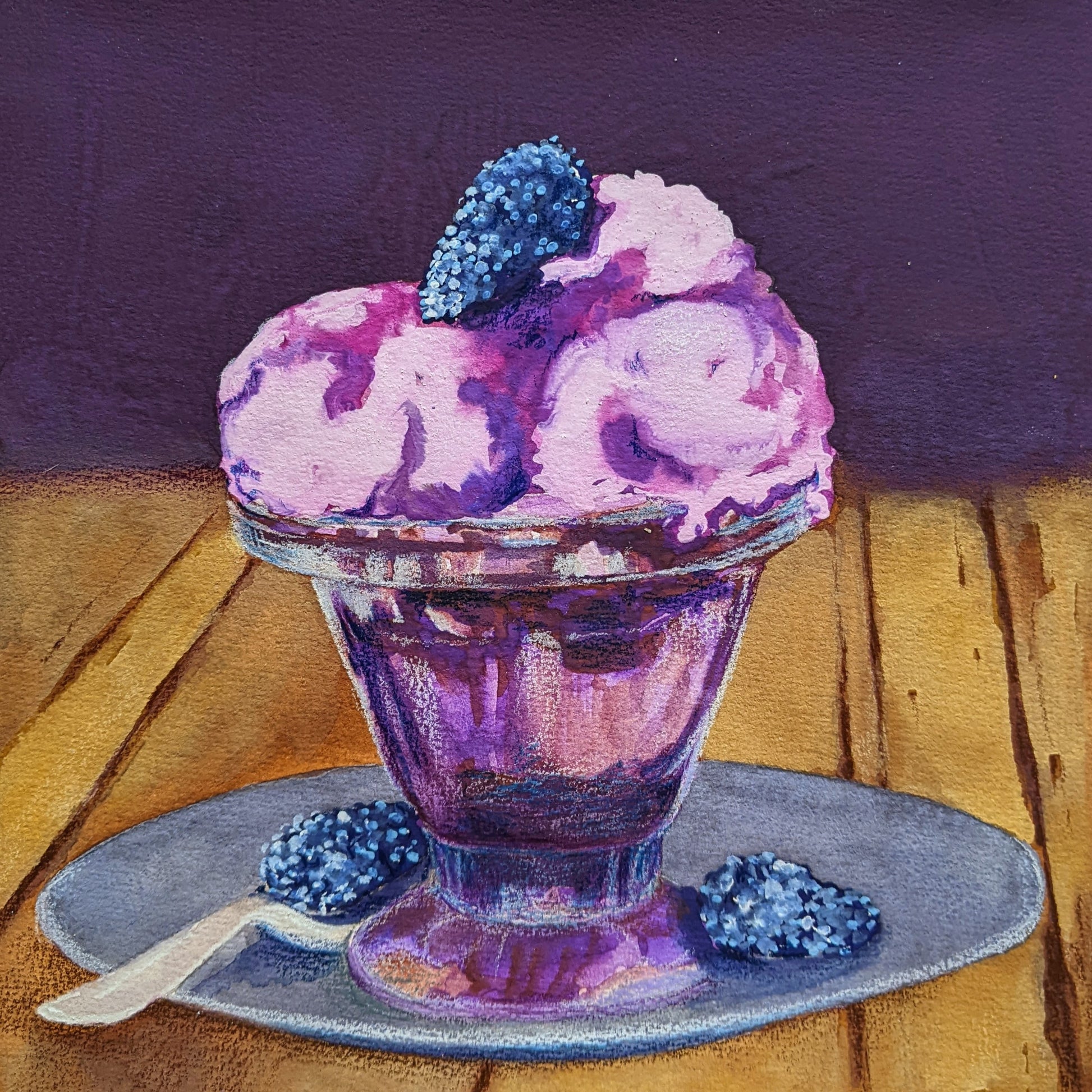 Melty, sweet, fruity, purple bowlful of ice cream.