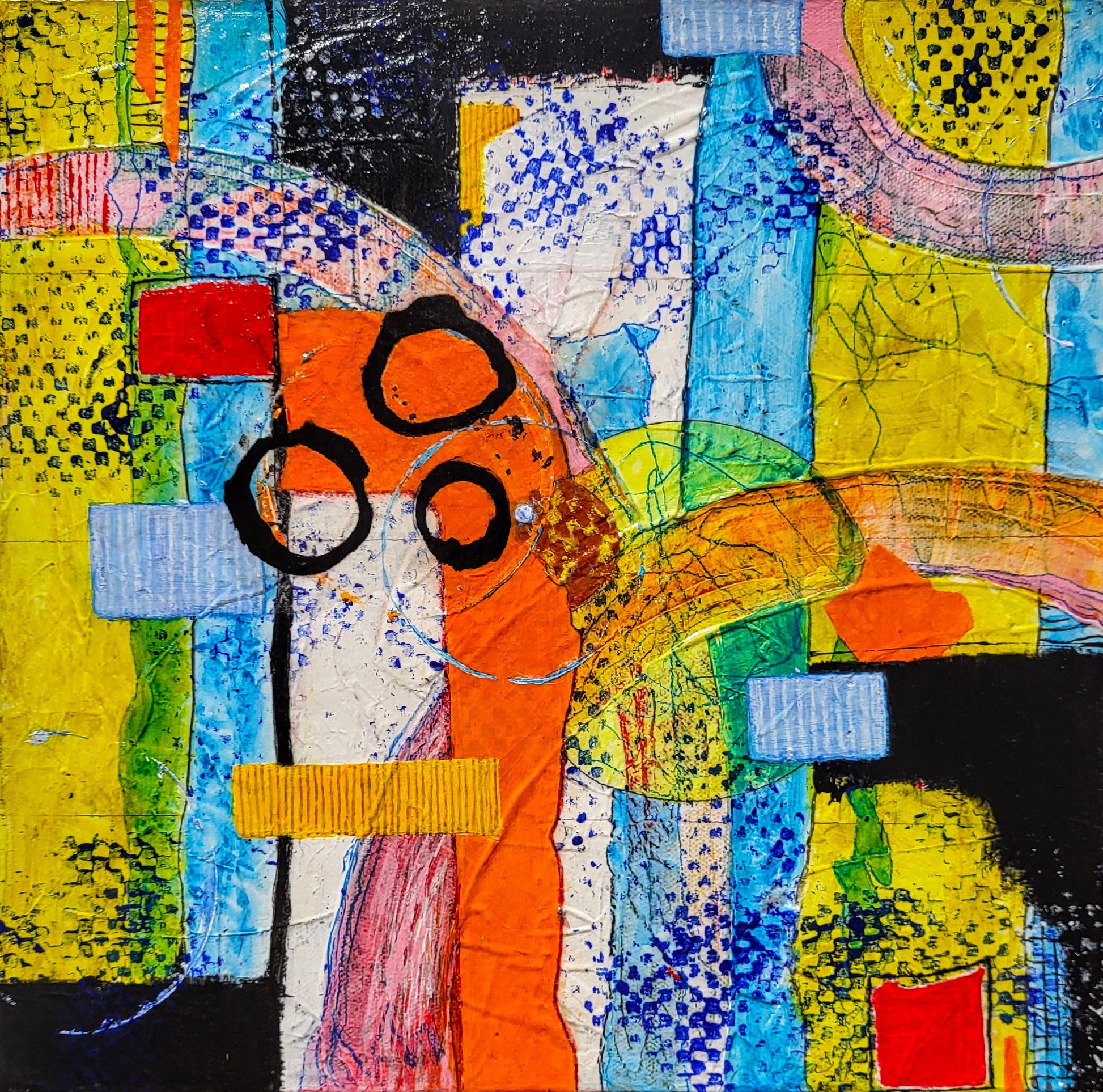 acrylic paint & mixed media on cradled canvas, 12" x 12"