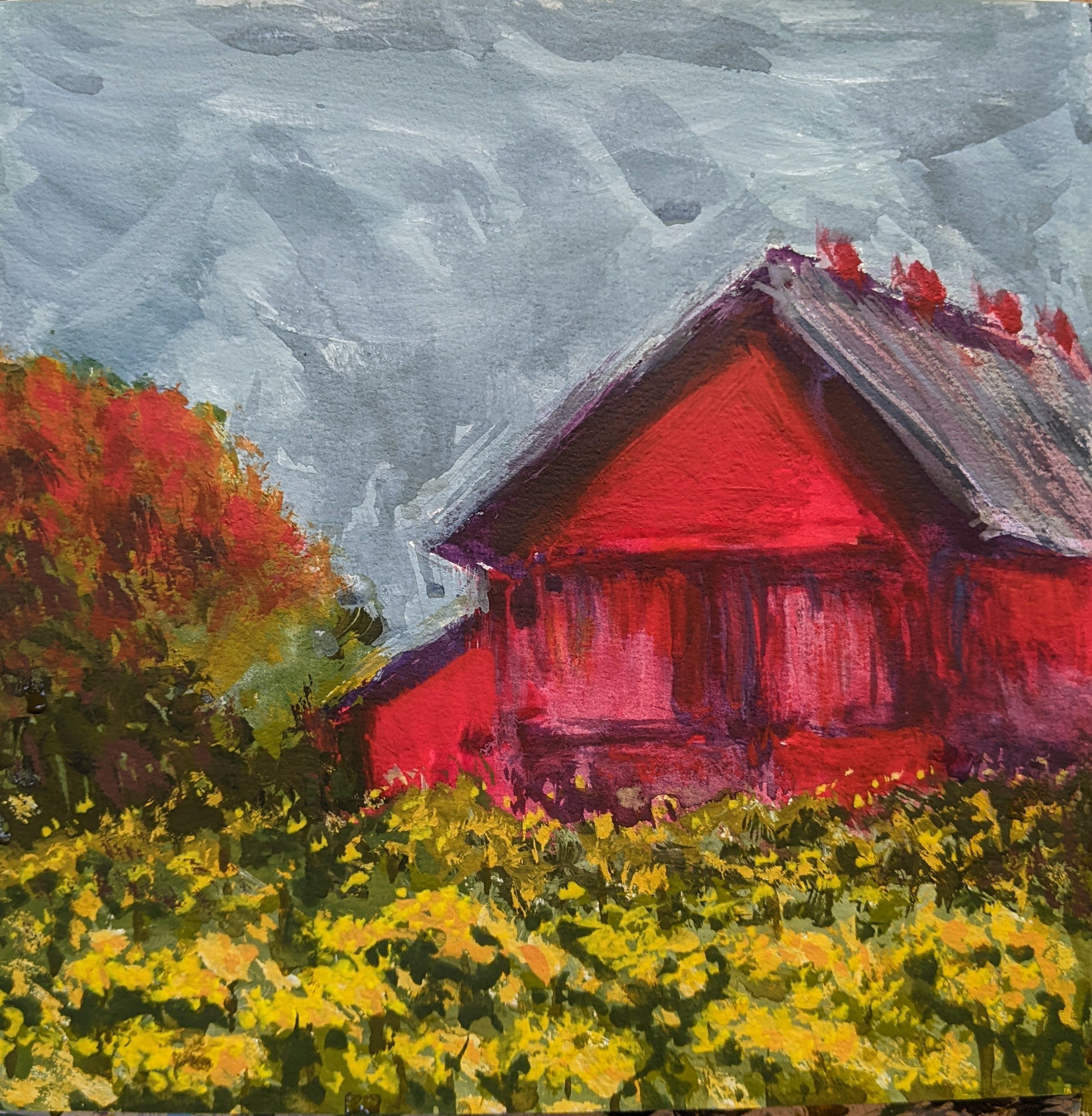 Favorite red barn on the hill surrounded by an apron of goldenrod in Autumn.