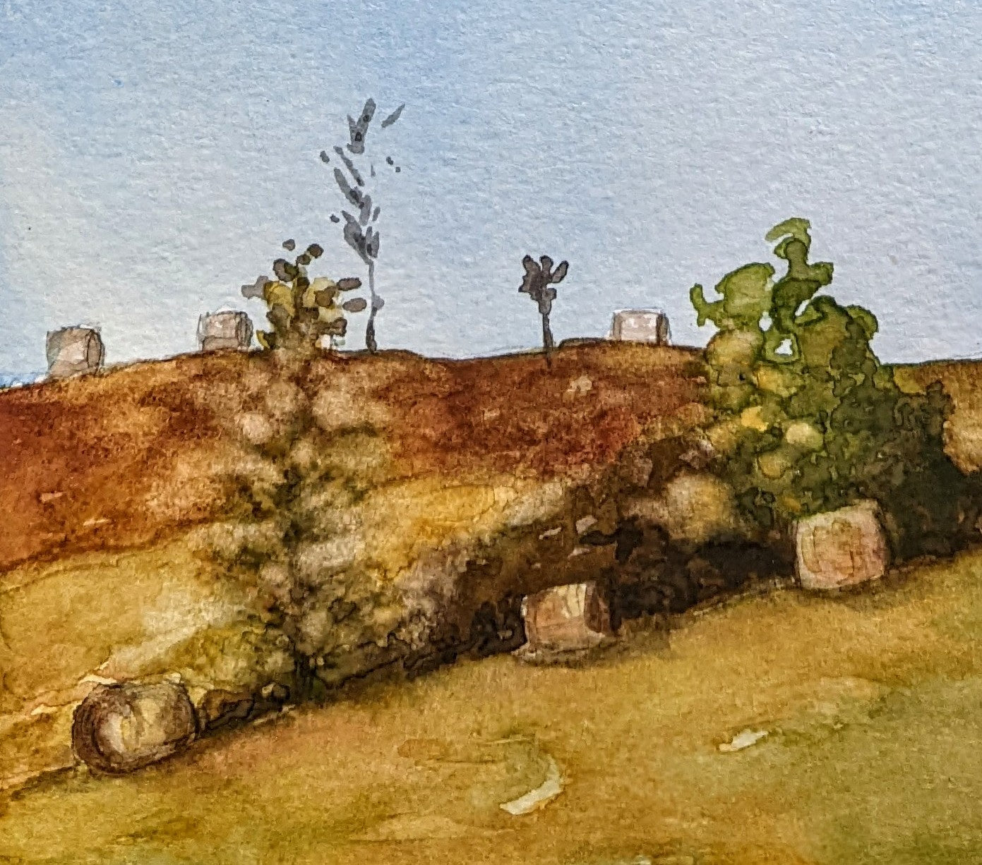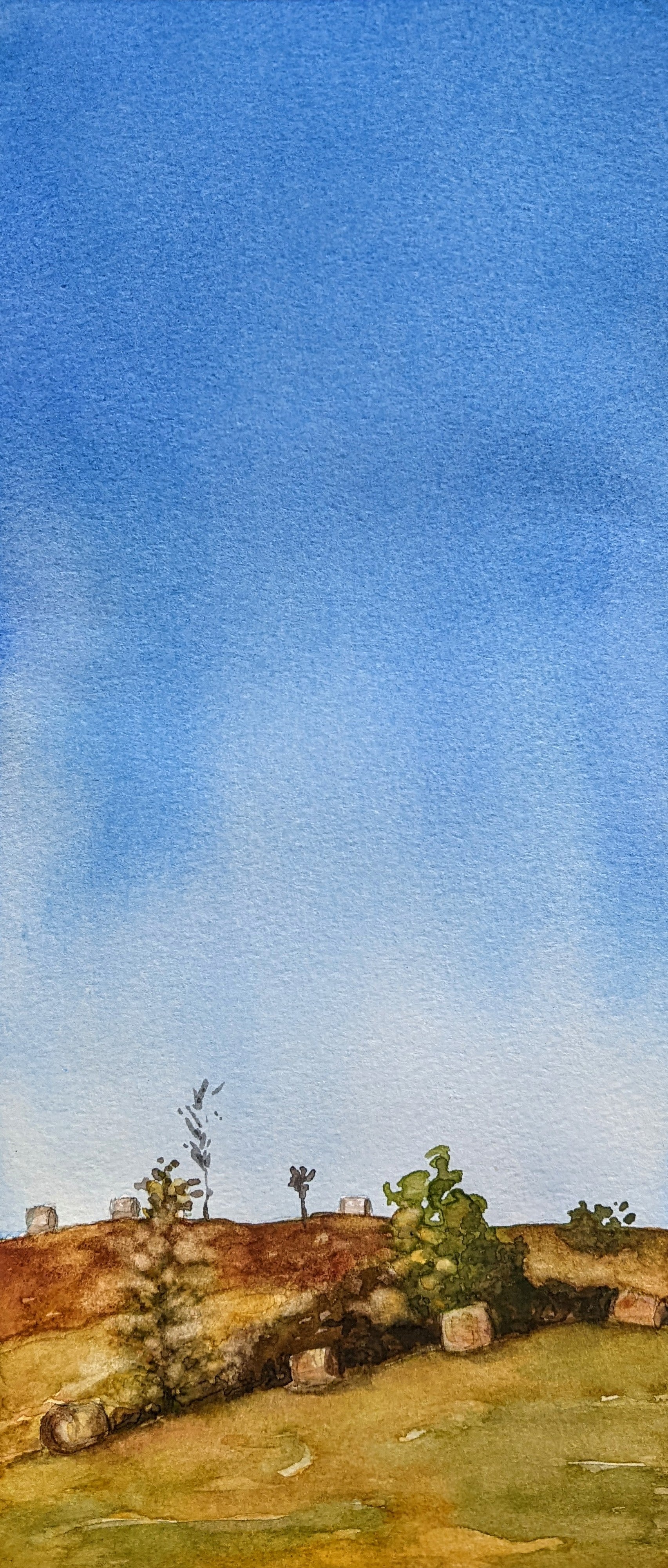 Watercolor on paper painting, approx. 6.25 x 13.25