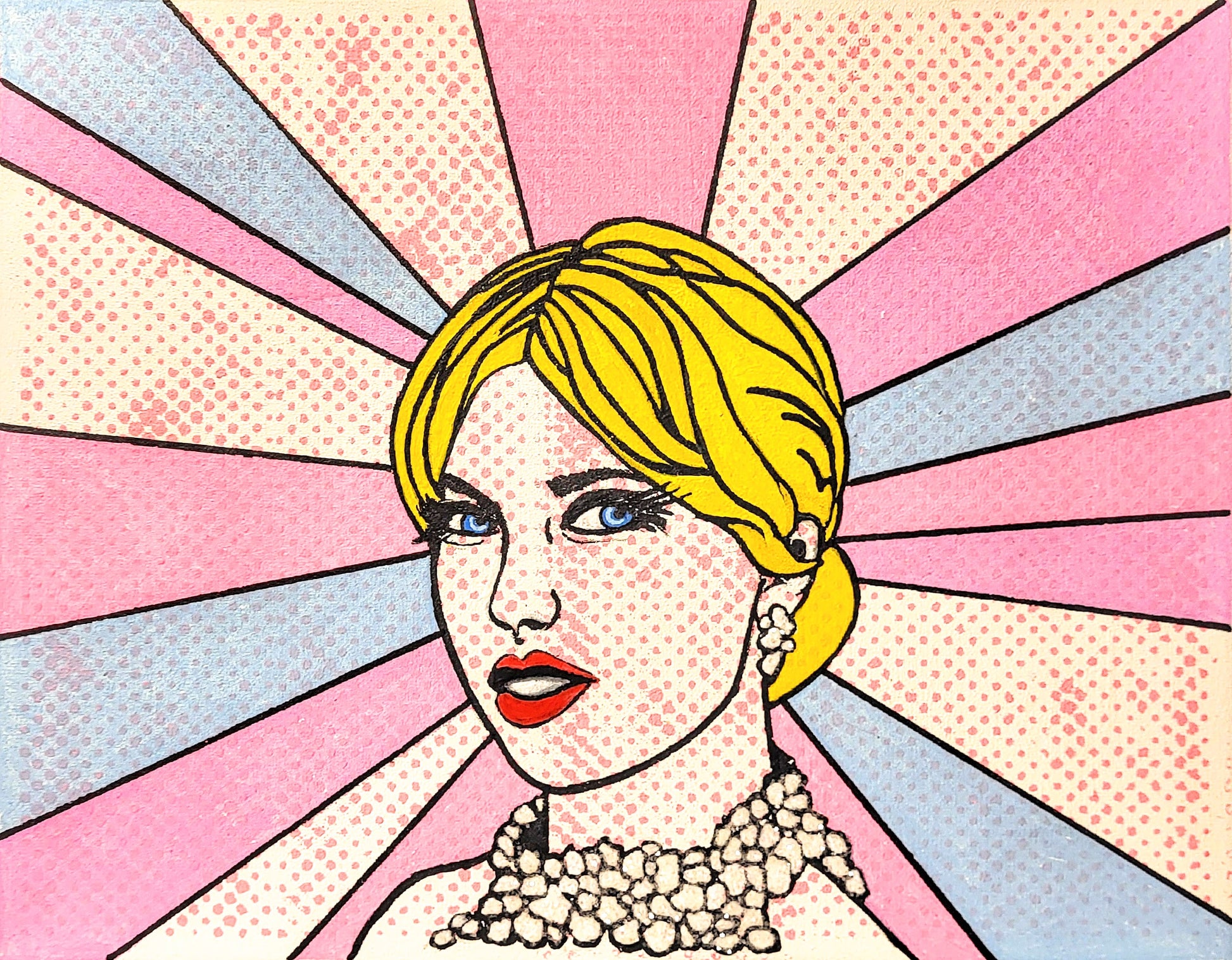 pop art rendition of @TaylorSwift, acrylic & glitter on canvas, 11" x 14" framed to 12.75" x 15.75"